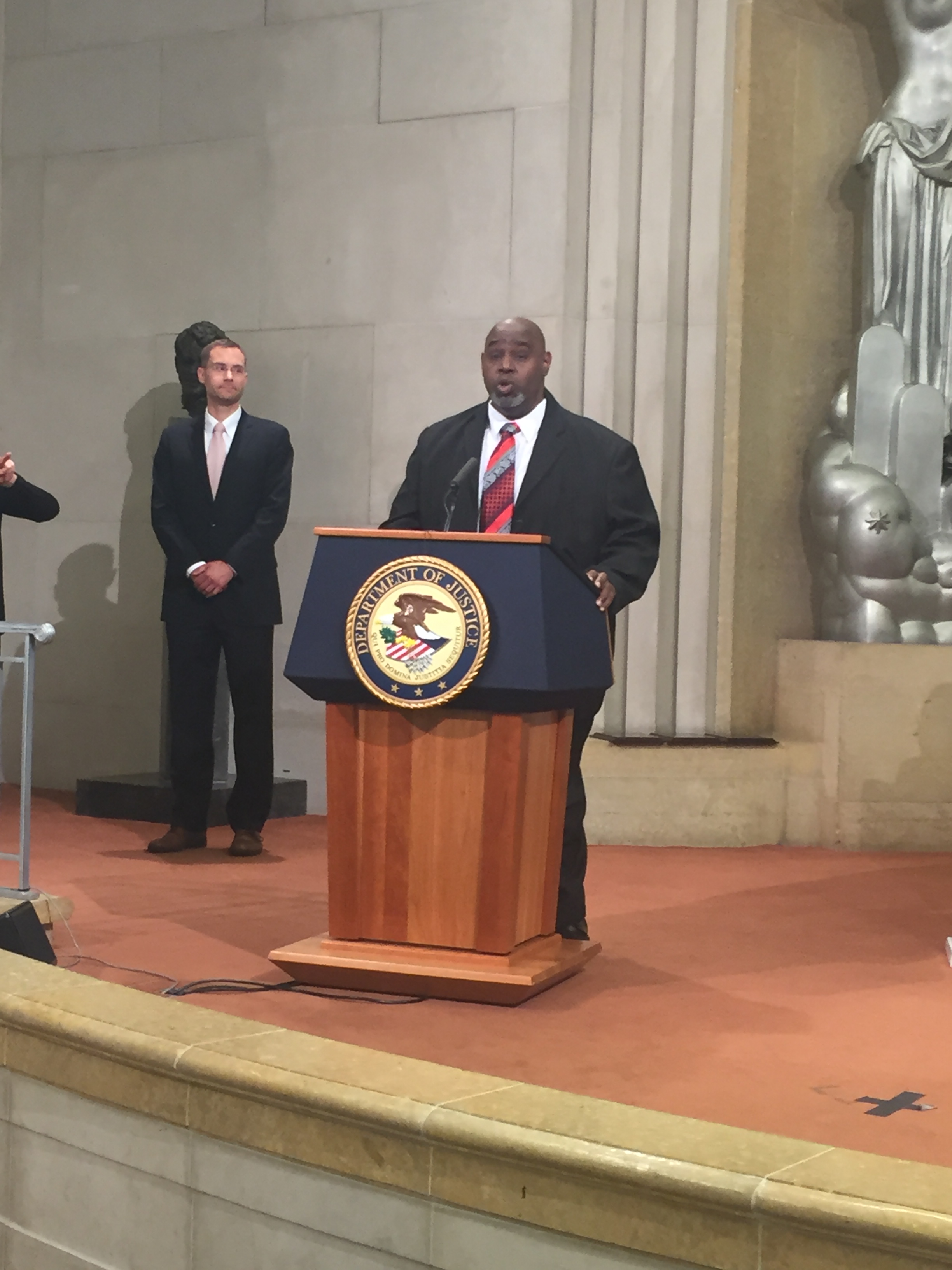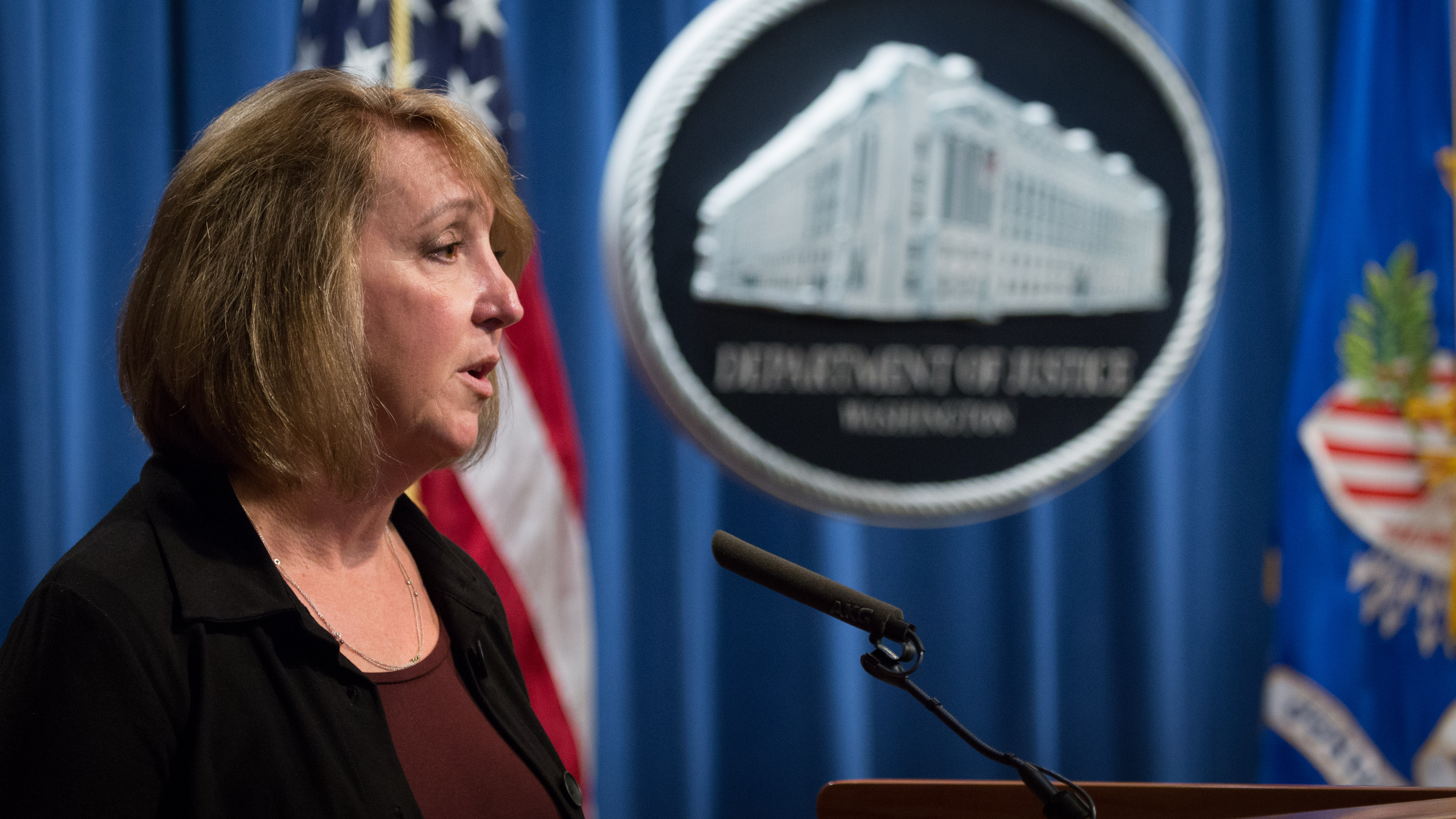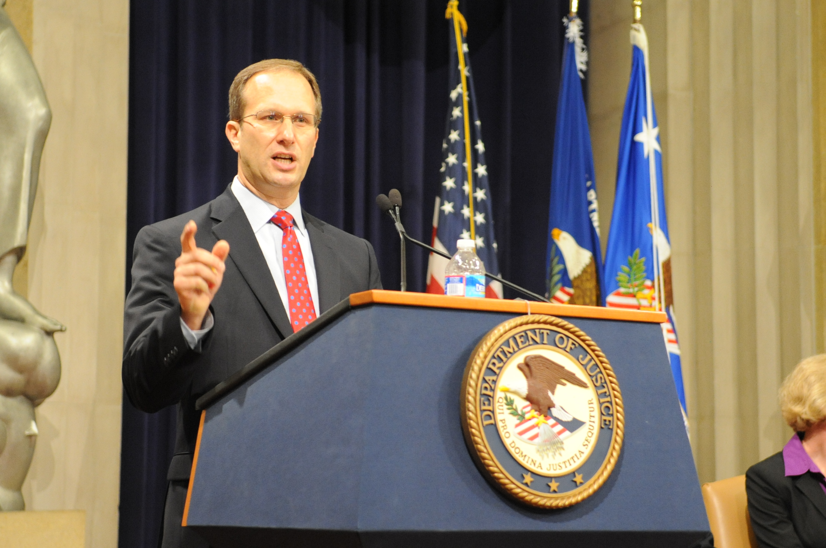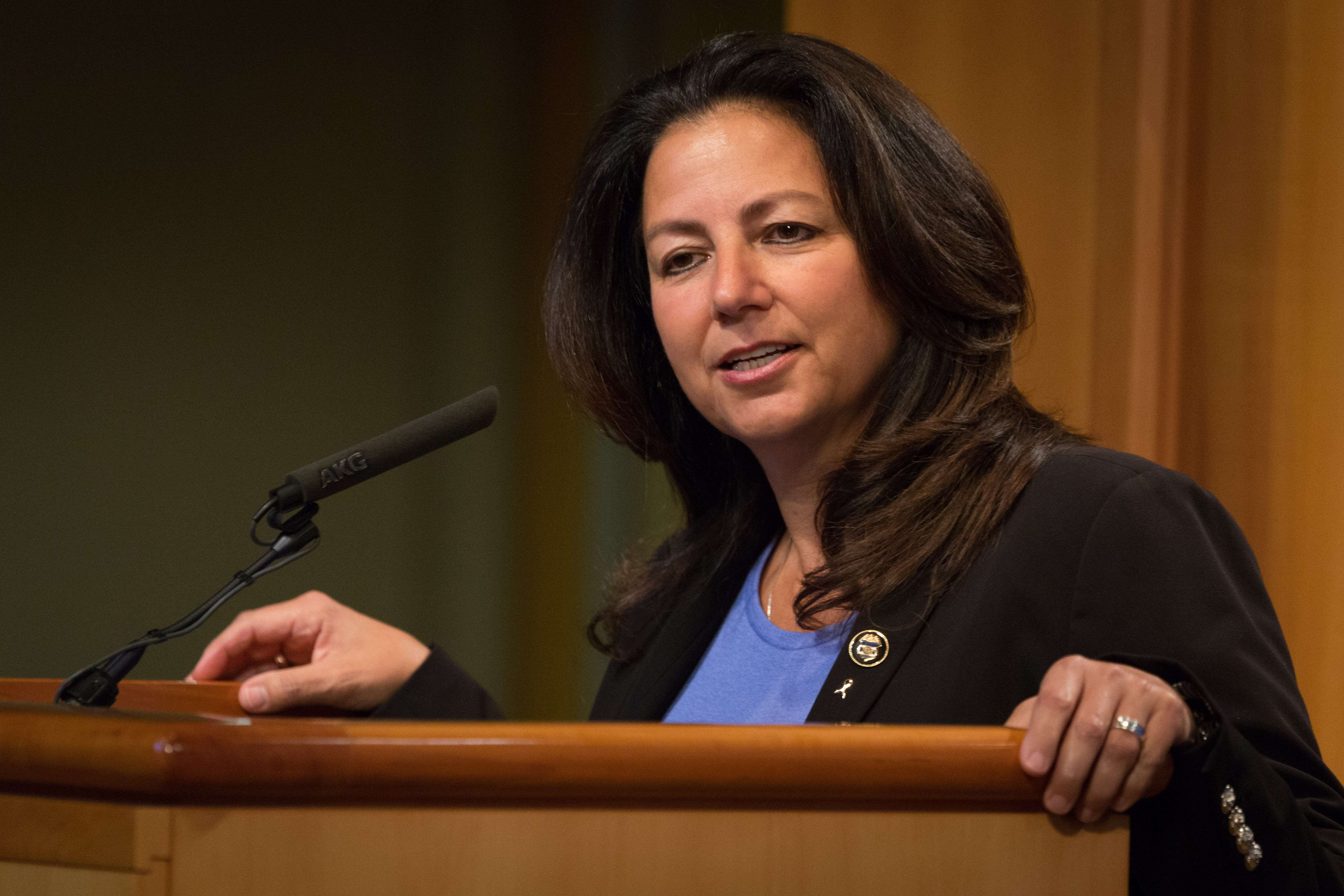 DOJ Pride Secretary Melissa E. Schraibman presenting the DOJ Pride Awards at the Department’s LGBTQ+ Pride Month observance on June 6, 2011