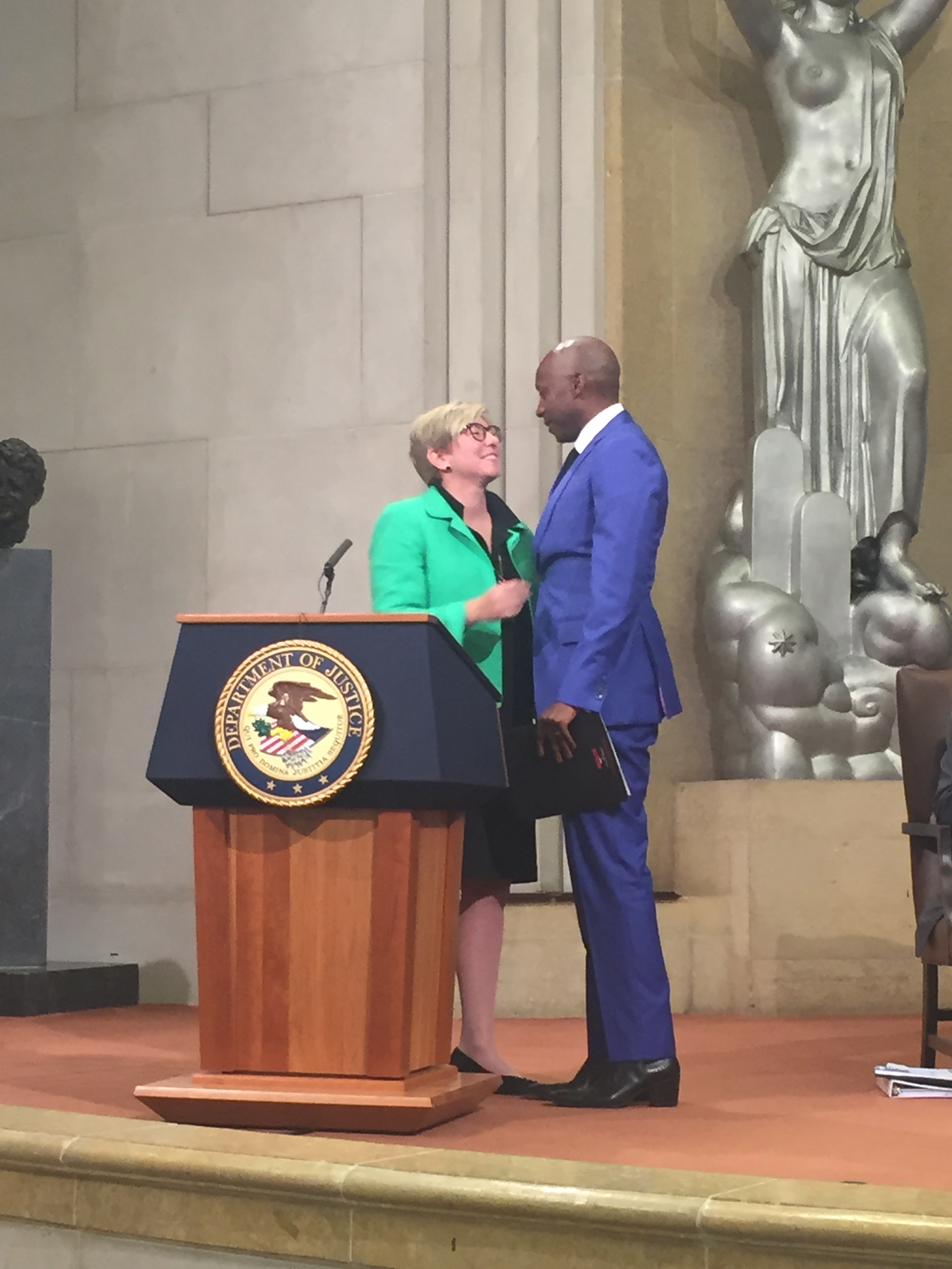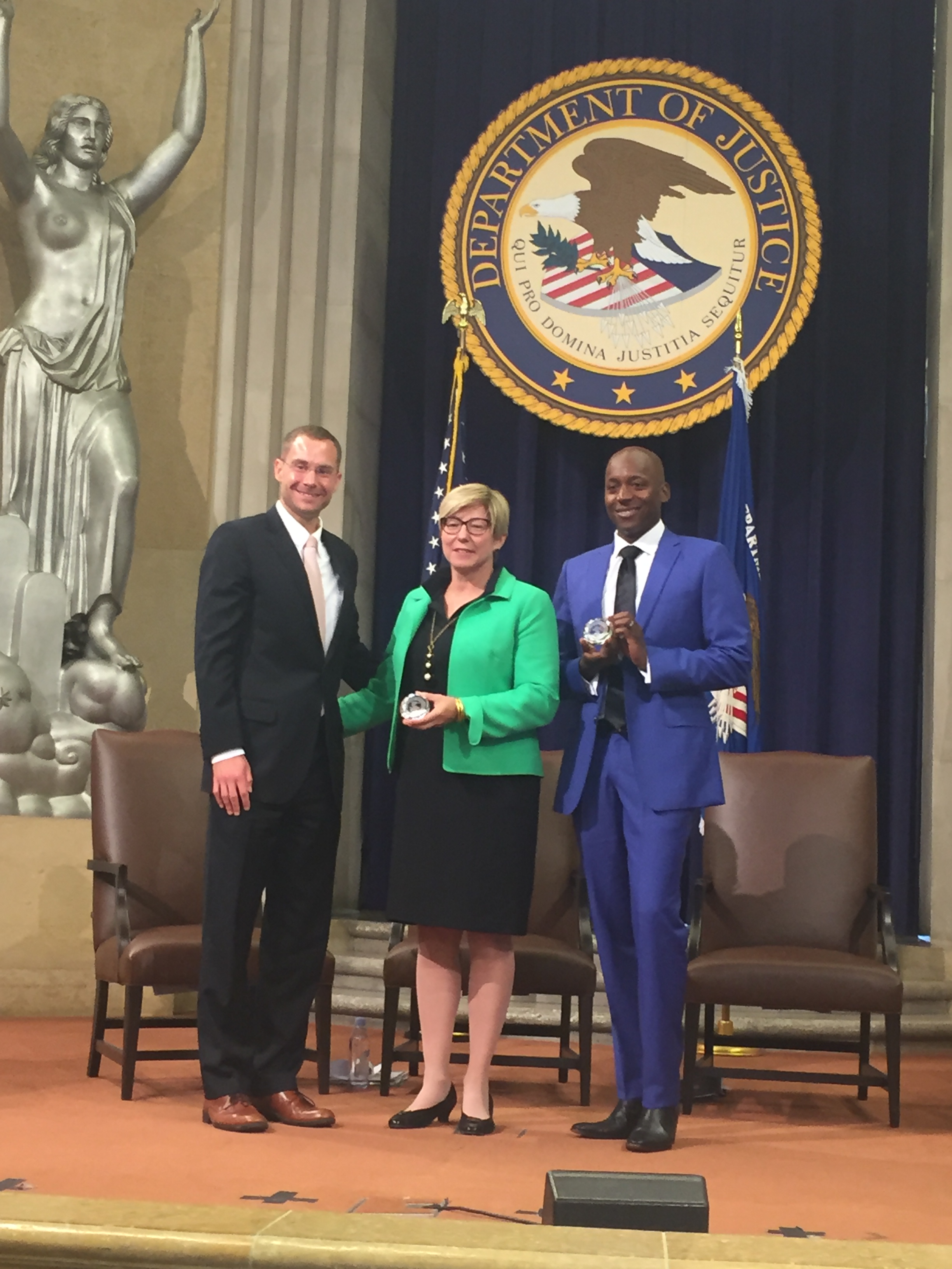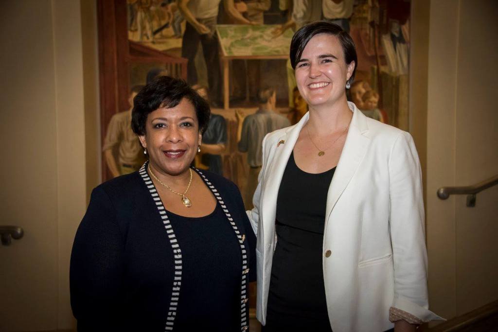 Attorney General Loretta Lynch with James R. Douglass Award Winner Ashley Evans (FBI)