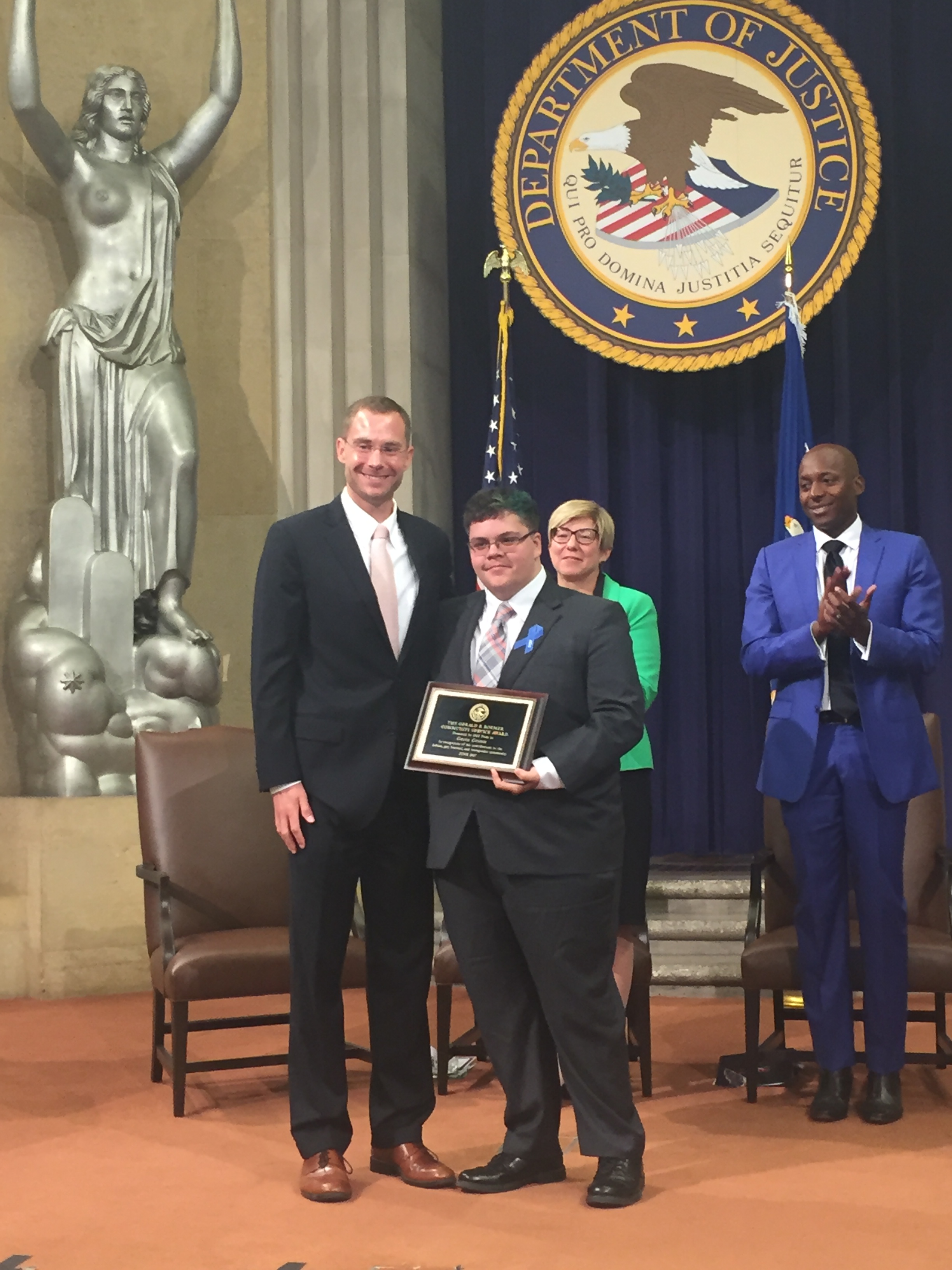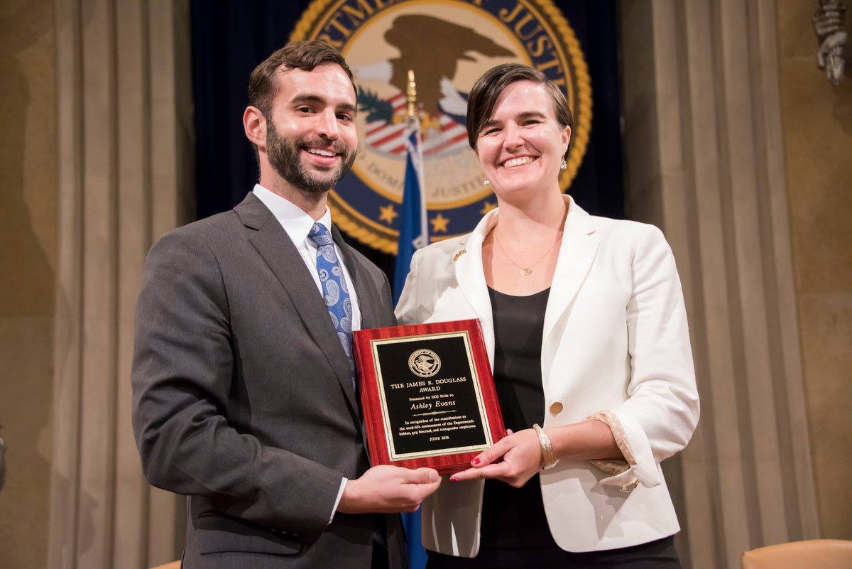 DOJ Pride President John Elias with James R. Douglass Award Winner Ashley Evans (FBI)