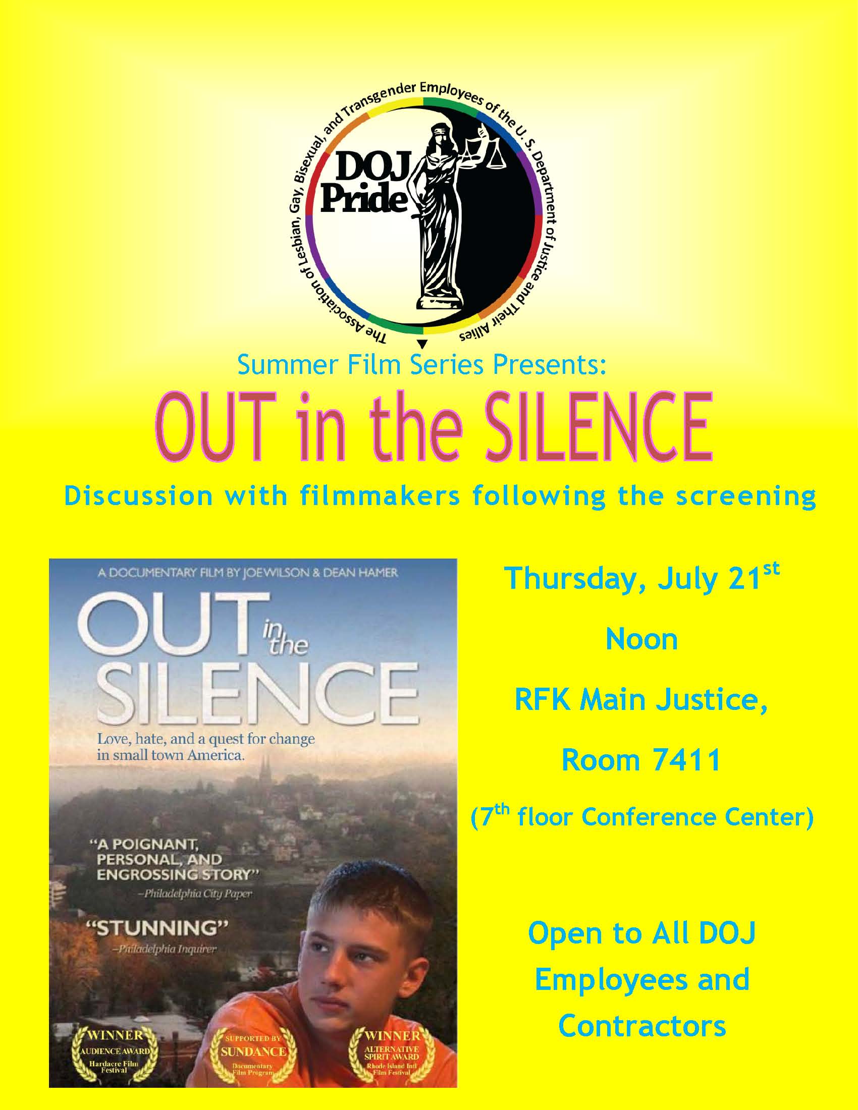 Joe Wilson and Dean Hamer discuss their film Out in the Silence at Main Justice on July 21, 2016