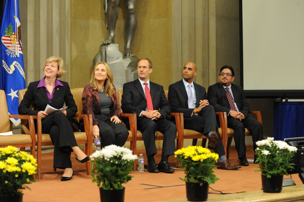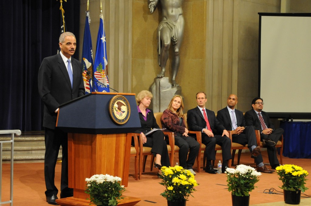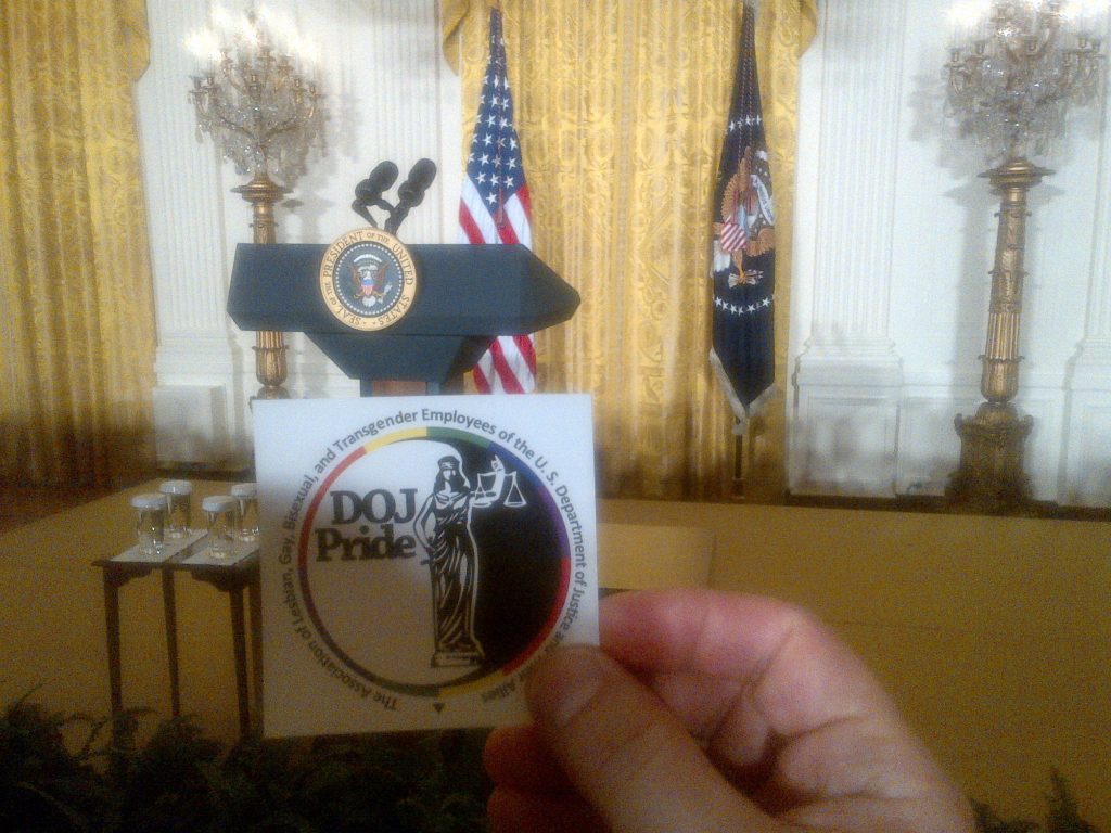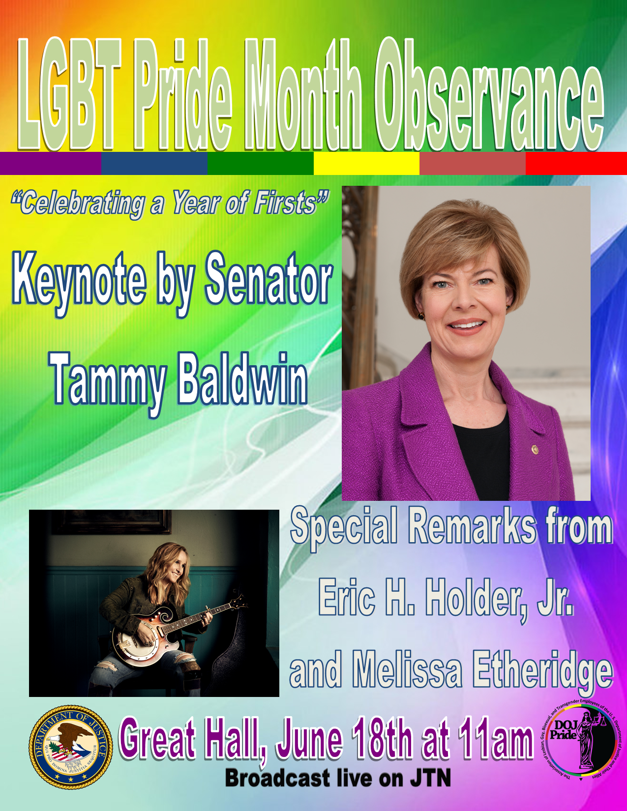 Attorney General Eric Holder, United States Senator Tammy Baldwin, Melissa Etheridge, DOJ Pride President Marc R. Salans, Vice President Trevor Blake, and Richard Toscano (EEOS)