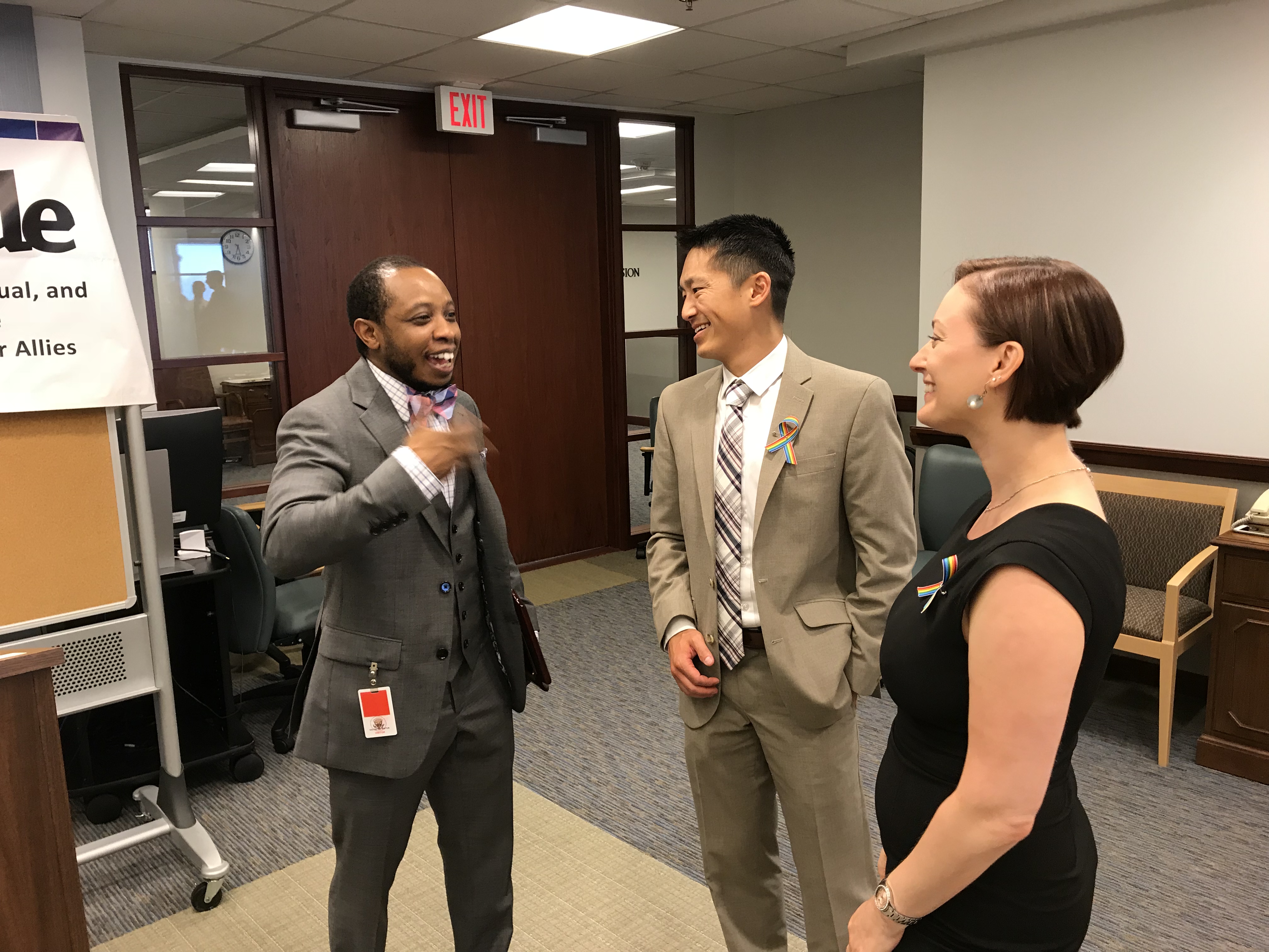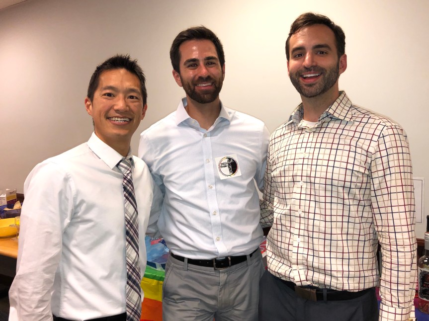 DOJ Pride President Jason Lee with board member Avi Kupfer and former President John Elias at the 2019 DOJ Pride Awards reception