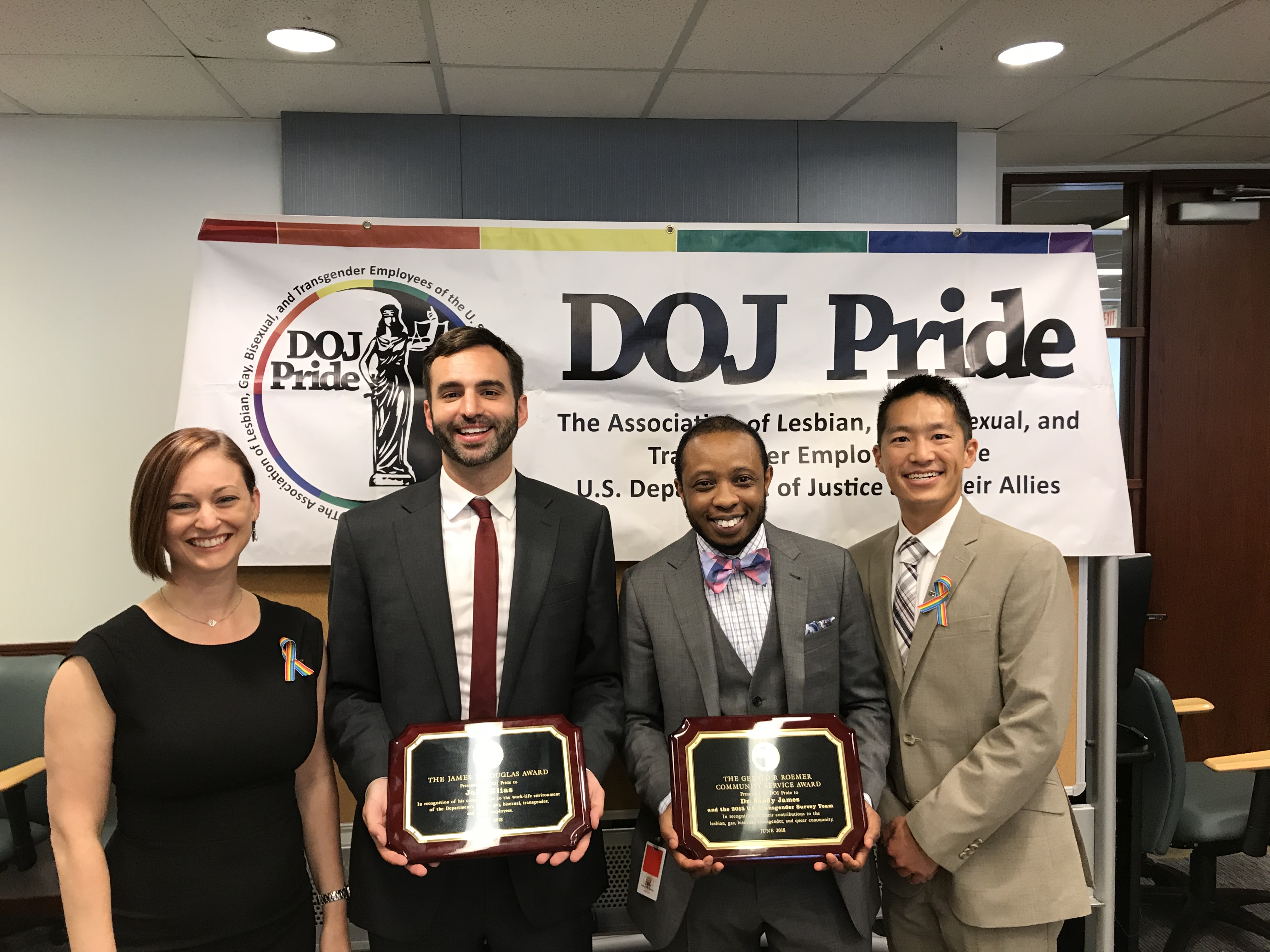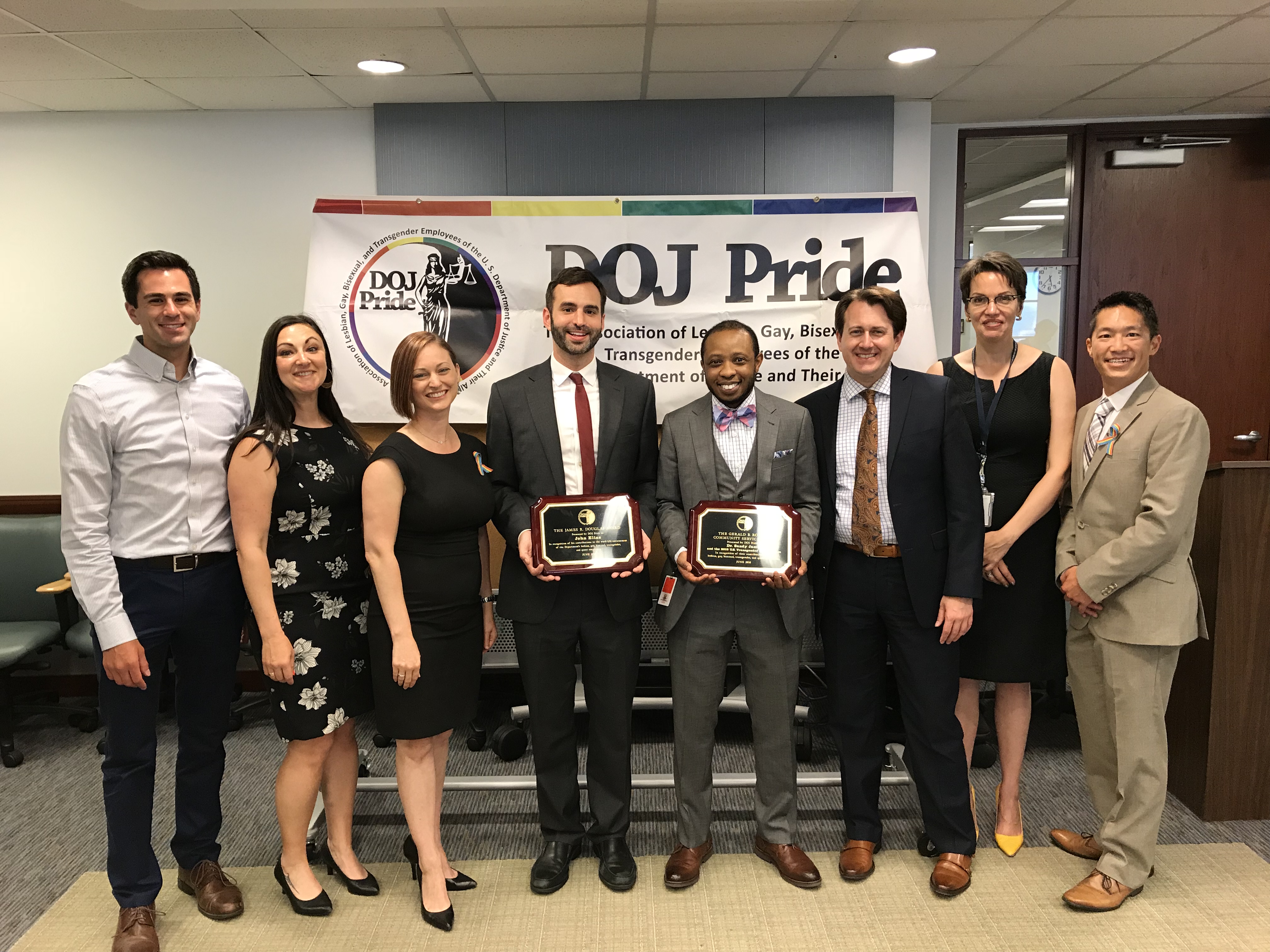 Former DOJ Pride Presidents (left to right) John Elias, Jason Lee, Jaye Sitton, Marisa Demeo, Robert Moossy, and Chris Hook
