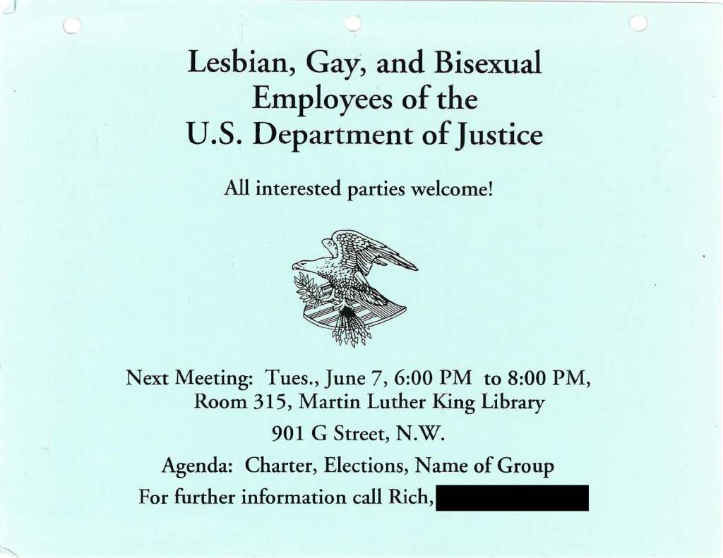 1994 Flyer informing DOJ employees of a meeting to establish the group that would become DOJ Pride