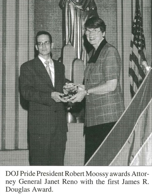 Attorney General Janet Reno at the Department’s very first Pride Month Observance Program in 1994