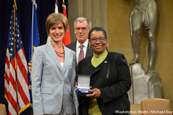 Sally Quillian Yates, Donald B. Verrilli, Jr, and Sheila Alexander-Reid at the 2015 Department Pride Month Observance