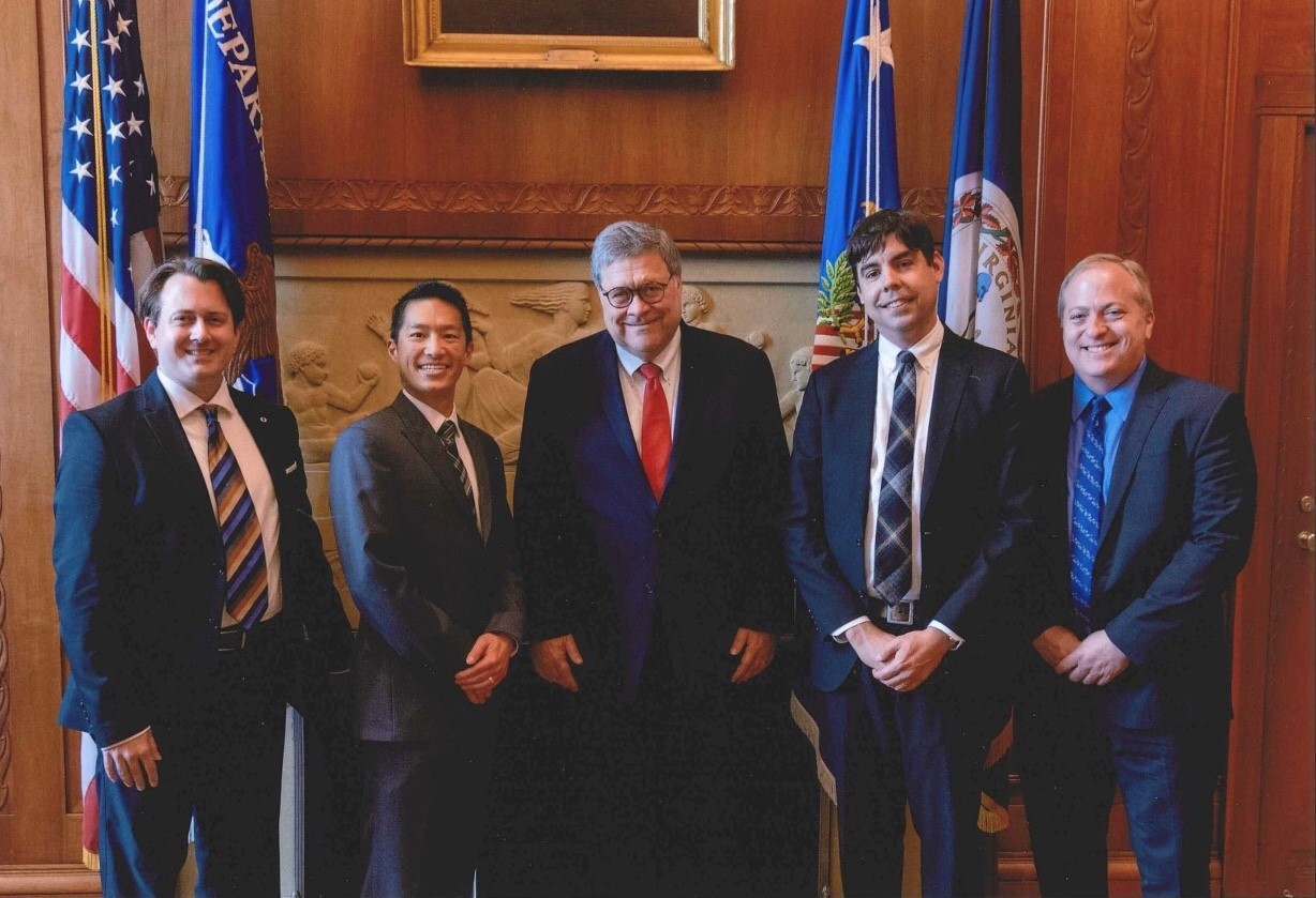 Attorney General William Barr with DOJ Pride board members Derek Julius, President Jason Lee, Paul Killebrew, and David Heath at our meeting on June 13, 2019