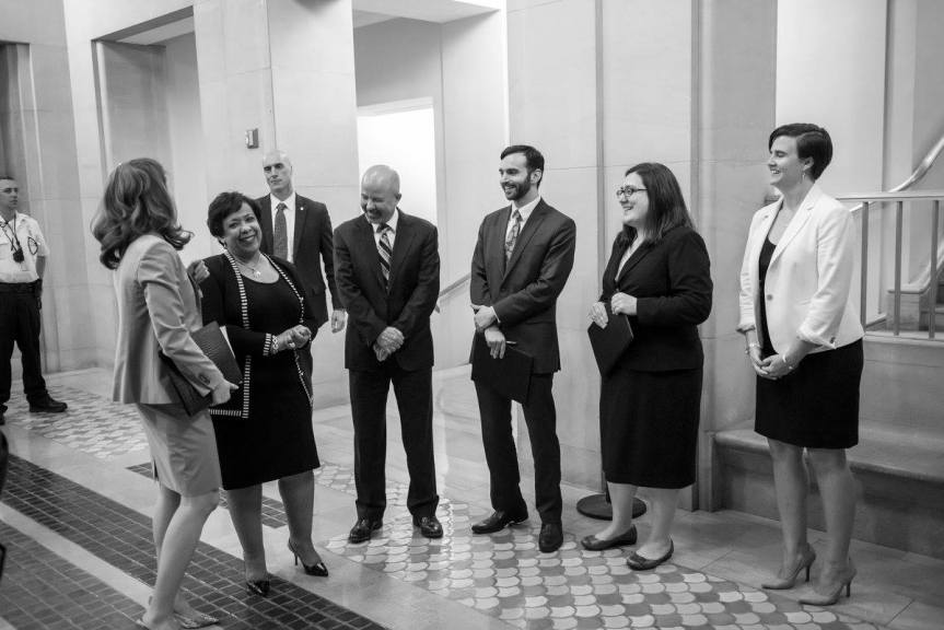Attorney General Loretta Lynch with DOJ Pride members at Main Justice